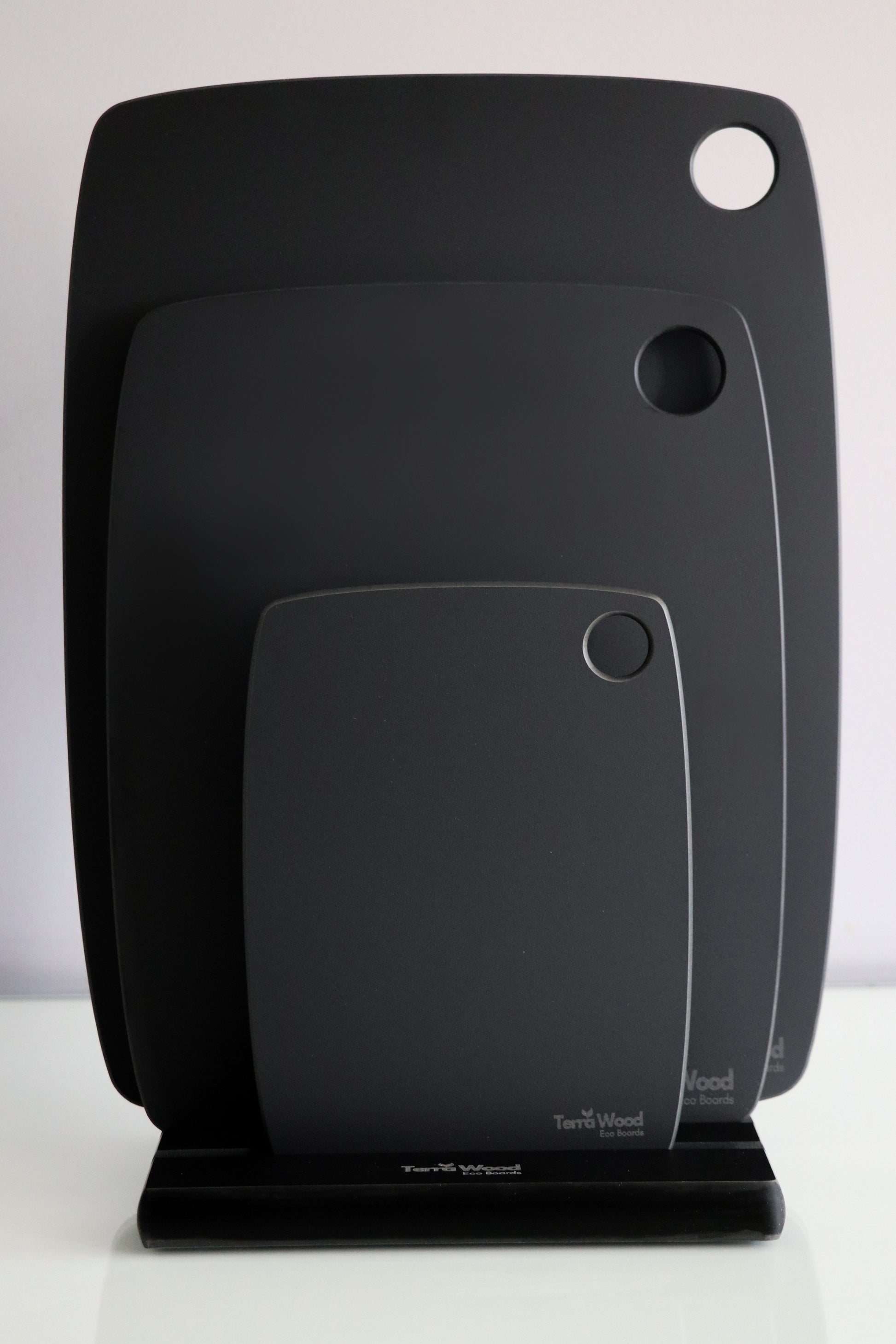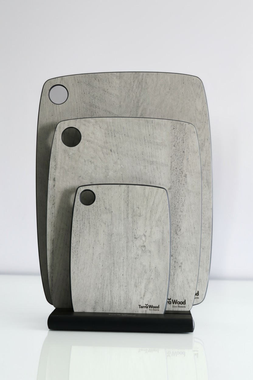 Stojan je vhodný pro prkénka o tloušťce 0,6 cm — tedy přesně jako všechna prkénka Terra Wood, bez ohledu na jejich velikost nebo barvu.